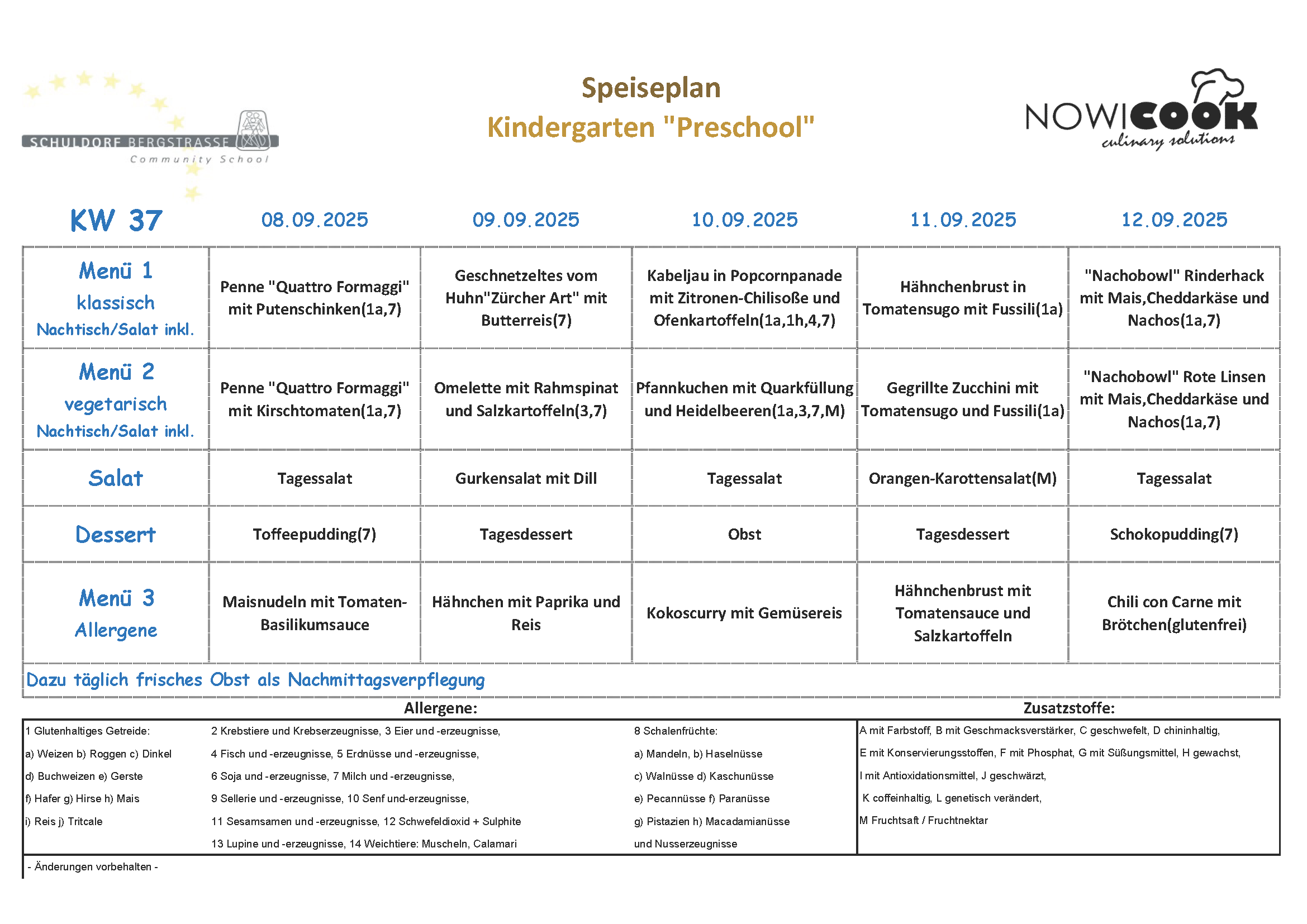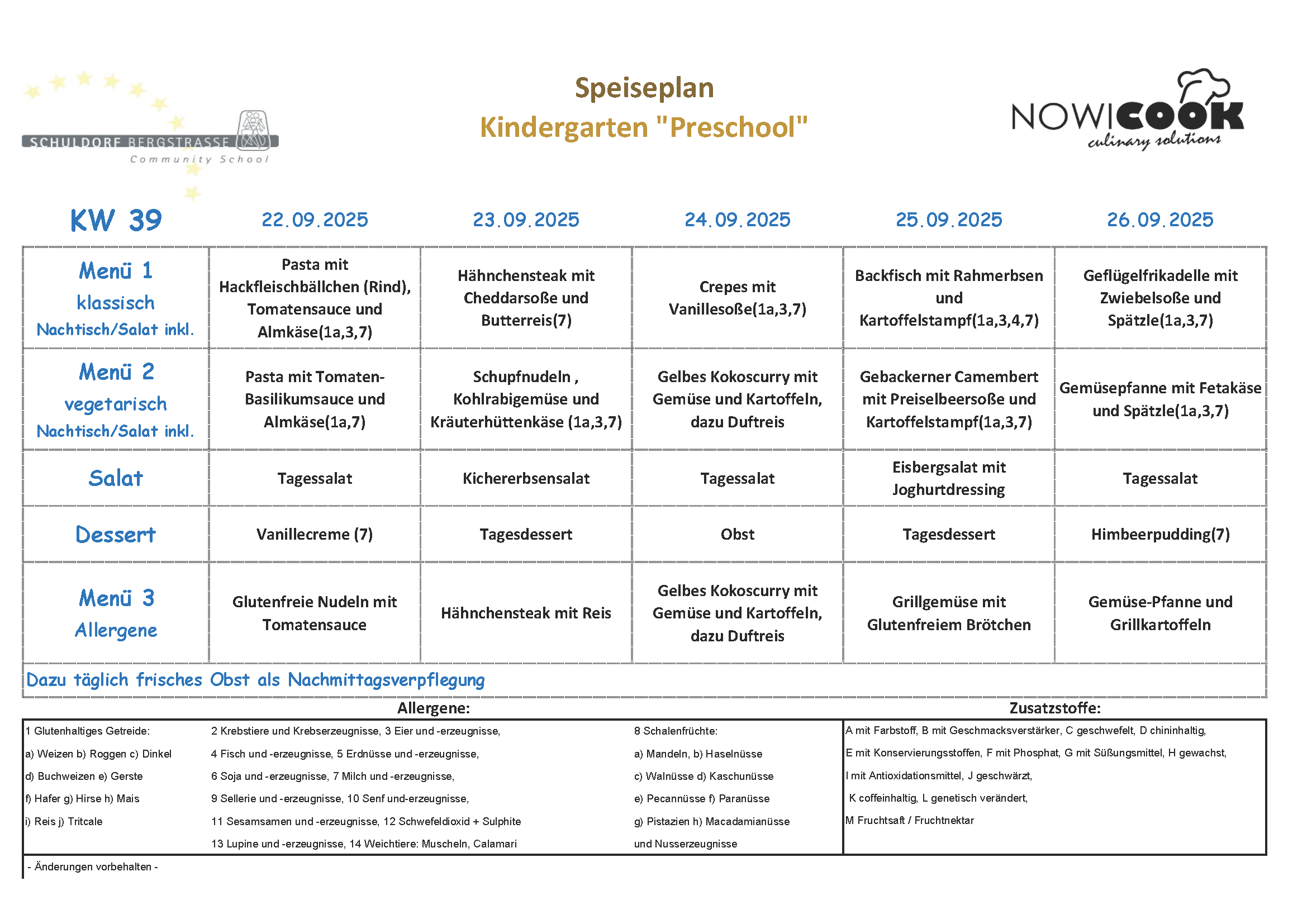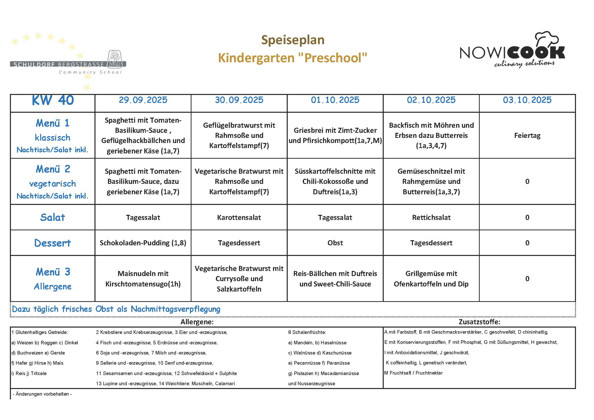 Speiseplan „Preschool“